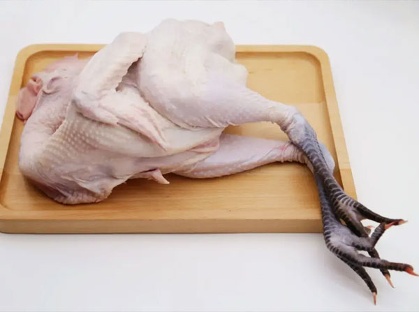 去毛后體表嫩白,雞肉結實有彈性